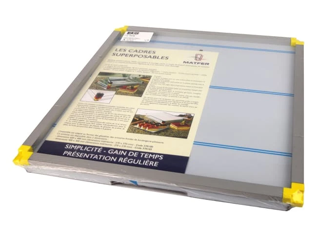 Système exclusif créé par Matfer permettant le montage rapide et simple de plaques d’entremets, de mousses, d’opéras en couches parfaitement régulières de 2 ou 3 parfums, voire davantage.