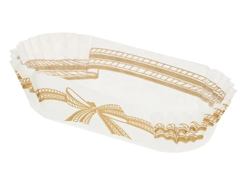 Caissettes en papier sulfurisé décorées « Ruban or ».
