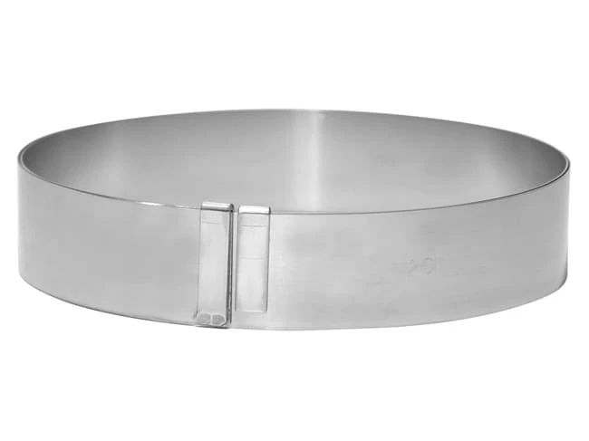 Cercle à pâtisserie extensible gradué en acier inoxydable ressort.