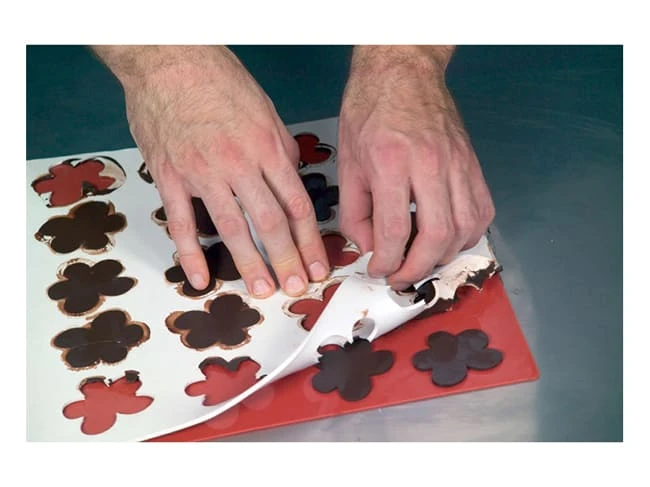 Pour des chocolats imprimés, utilisez les feuilles transfert disponibles sur le site.