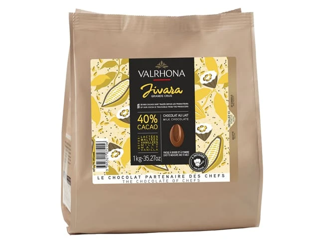 Crémeux et cacaoté le chocolat Jivara de Valrhona vous séduira par son goût prononcé et ses notes cacaotées, ses tonalités crémeuses, harmonieuses avec des touches finales de vanille et de malt.