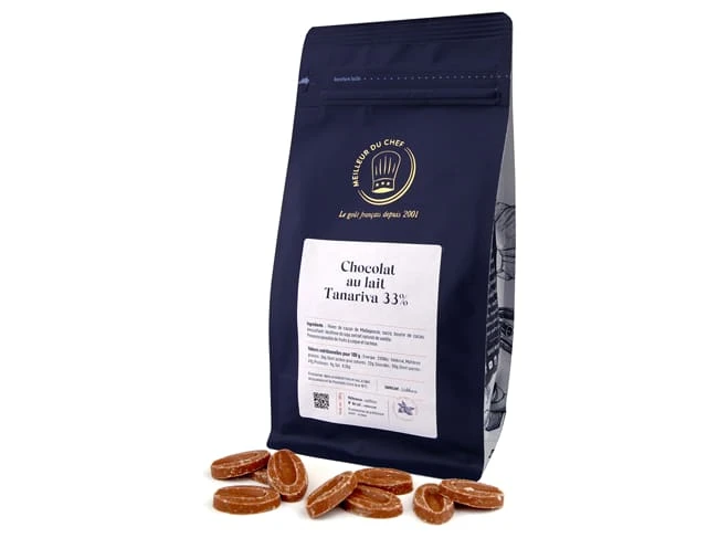 - Ingrédients : sucre 37,4% beurre de cacao 25,5% lait entier en poudre 22,8% fèves de cacao de Madagascar 8,2% lait écrémé en poudre 5,1% extrait naturel de vanille 0,5% émulsifiant: lécithine de soja 0,4% arôme naturel de vanille 0,1%.
