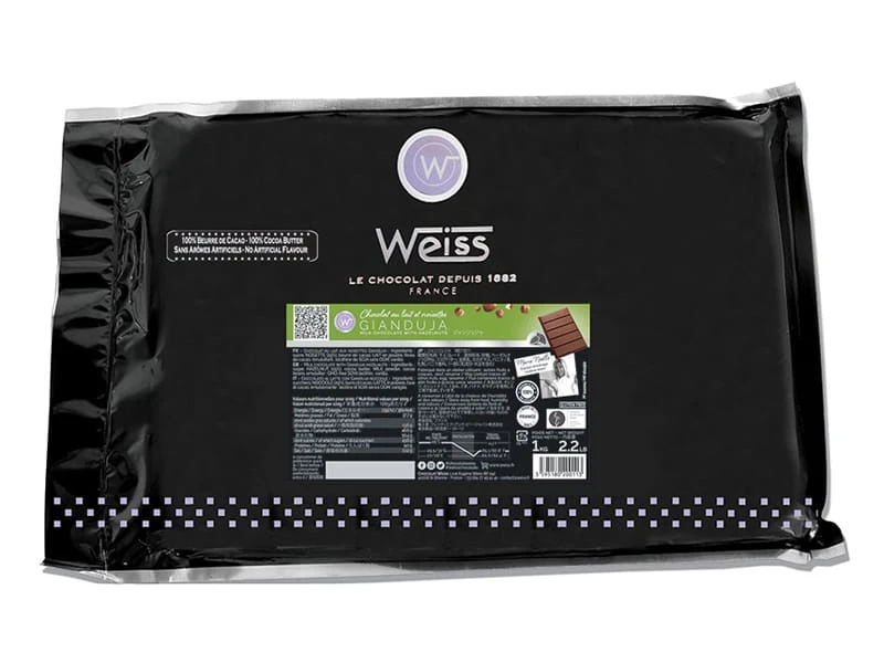 Chocolat au lait aux noisettes gianduja : intense et onctueux, la véritable recette du Gianduja élaborée à base de couverture au lait 35%, de praliné aux noisettes romaines et de pâte de noisettes.