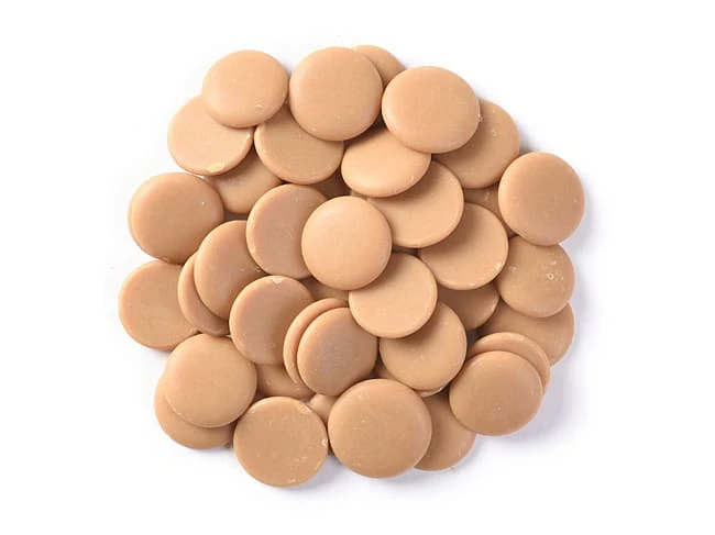 Ce chocolat en pistoles blanc Zéphyr caramel 35% possède toutes les caractéristiques du Zéphyr blanc 34% avec d’irrésistibles notes de chocolat blanc crémeux au bon goût de caramel au lait avec une pointe de sel, véritable hommage au caramel beurre salé breton.