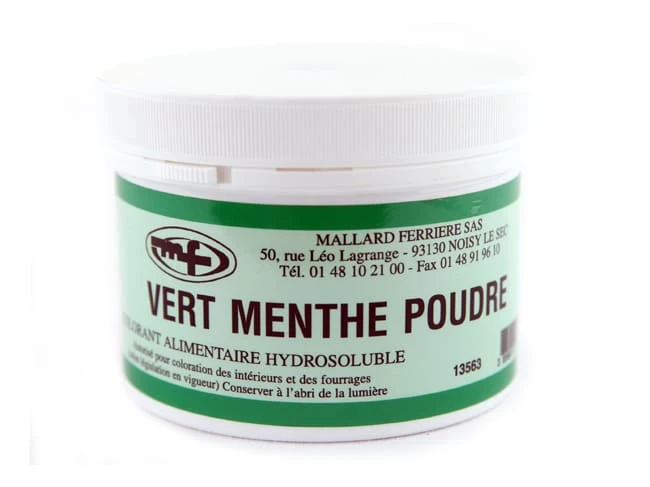 Colorant alimentaire en poudre vert menthe E102/E131.