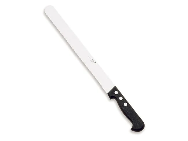 Couteau à génoise (ou entremets). Lame en acier inoxydable pleine soie, manche ABS, 3 rivets, mitre alu rapportée.
