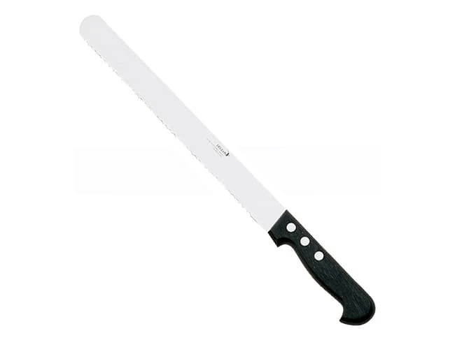 Couteau à génoise (ou entremets). Lame en acier inoxydable pleine soie, manche ABS, 3 rivets, mitre alu rapportée.