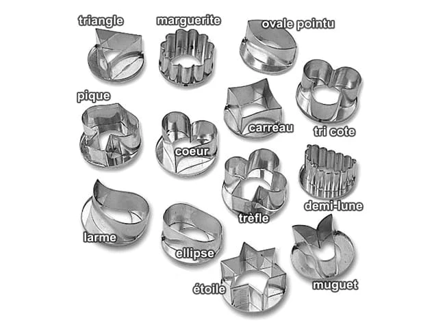 | Forme | Carreau, Coeur, Demi-lune, Étoiles, Larme, Marguerite, Ovale, Pique, Trèfle, Tri côte |