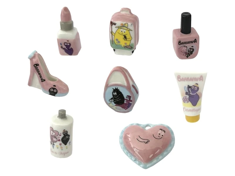 Boite de 100 fèves assorties en céramique sur le thème « Barpapa Fashion ». Finition brillante.