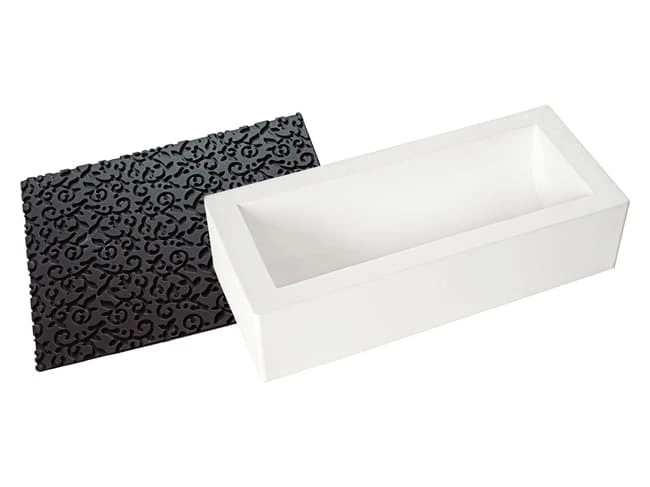 Moule à bûche en silicone avec son tapis forme arabesque.