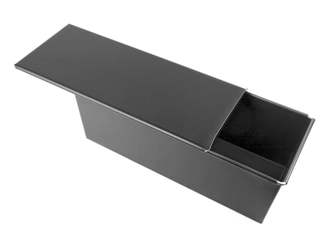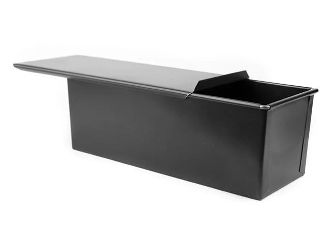 Moule à pain de mie en tôle bleuie, avec son couvercle.