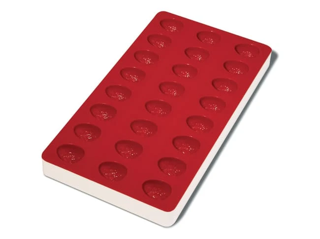 Moule à pâte de fruit permettant de réaliser 24 pâtes de fruit en forme de fraise.