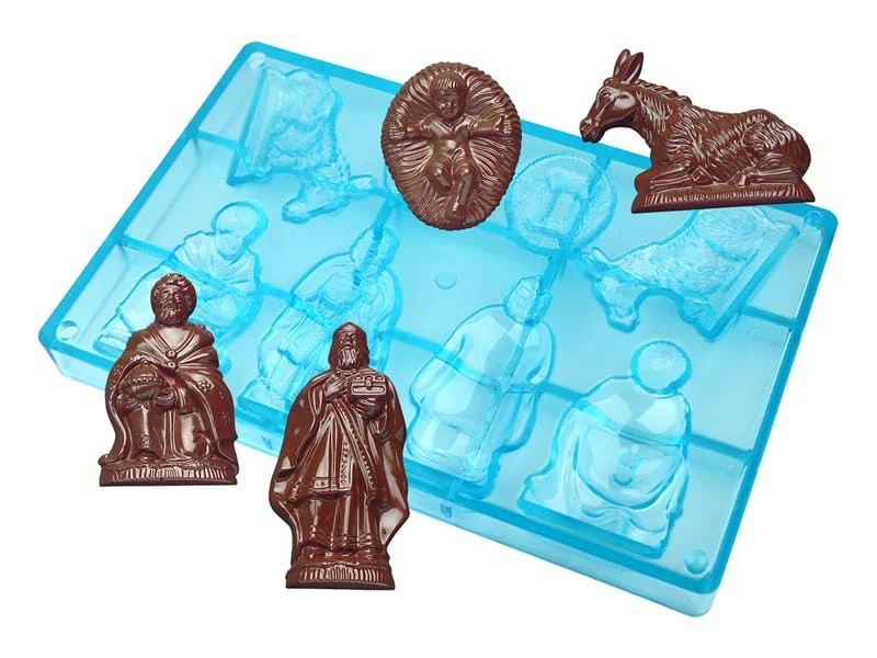Moule en tritan 8 empreintes recto/verso formant 4 personnages de la crèche.