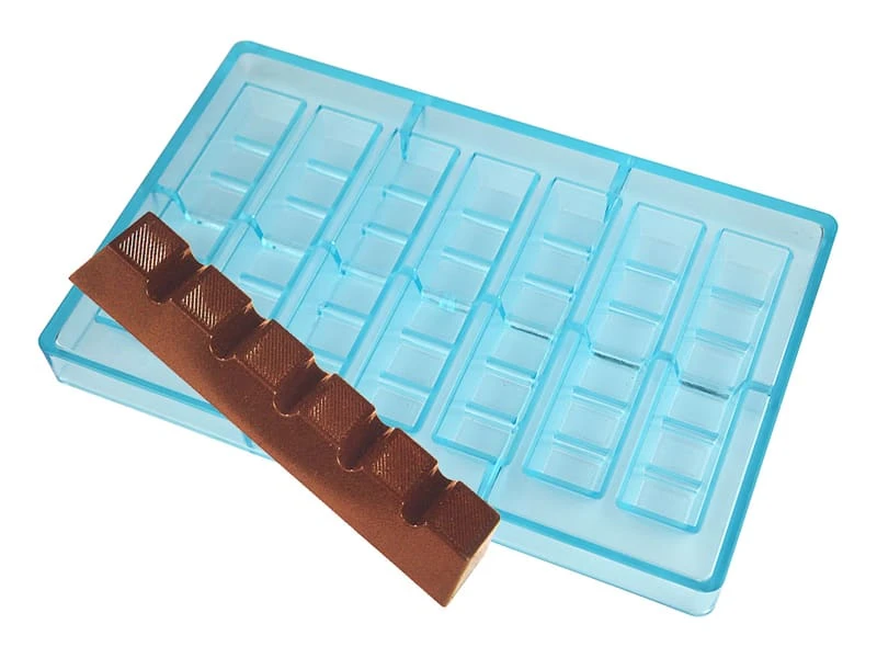 Moule en tritan composé de 7 empreintes formant des barres de 6 carrés rainurés.