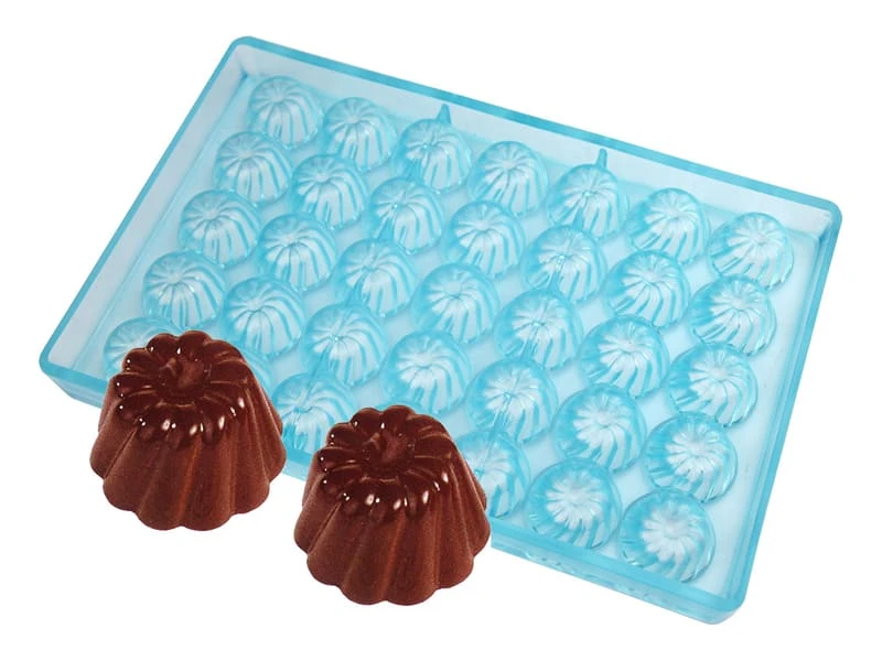 Moule en tritan comportant 35 empreintes formant des bonbons cannelés.