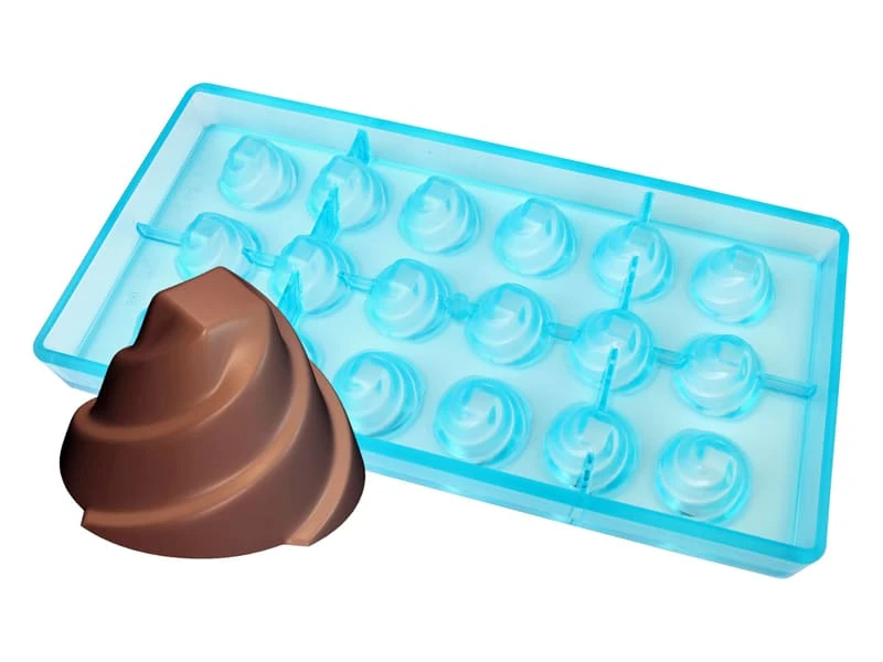 Moule en tritan composé de 18 empreintes formant un bonbon spirale.