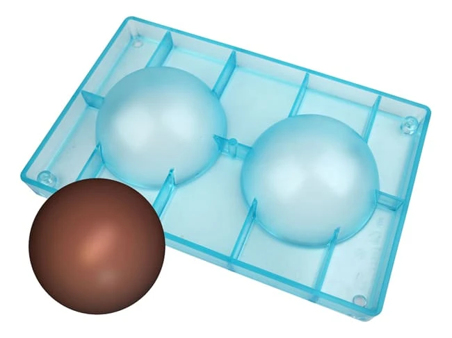 Ce type de moule permet de faire des coques en chocolat qui, après assemblage, formeront une sphère.