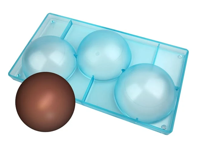 Ce type de moule permet de faire des coques en chocolat qui, après assemblage, formeront une sphère.