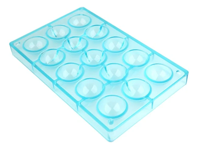 Ce type de moule permet de faire des coques en chocolat qui, après assemblage, formeront une sphère.
