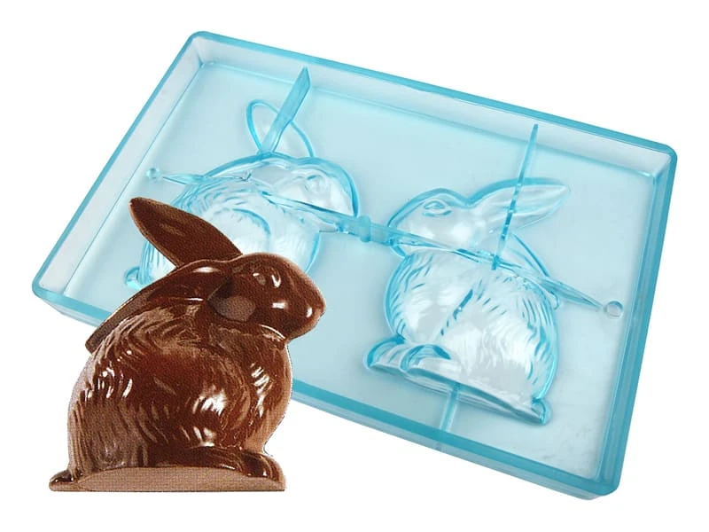 Moule en tritan comportant 2 empreintes pour former 1 lapin assis.