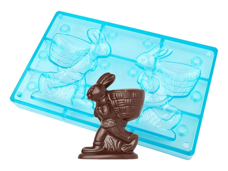 Moule en tritan comportant 2 empreintes permettant de réaliser après assemblage 1 lapin portant son panier.