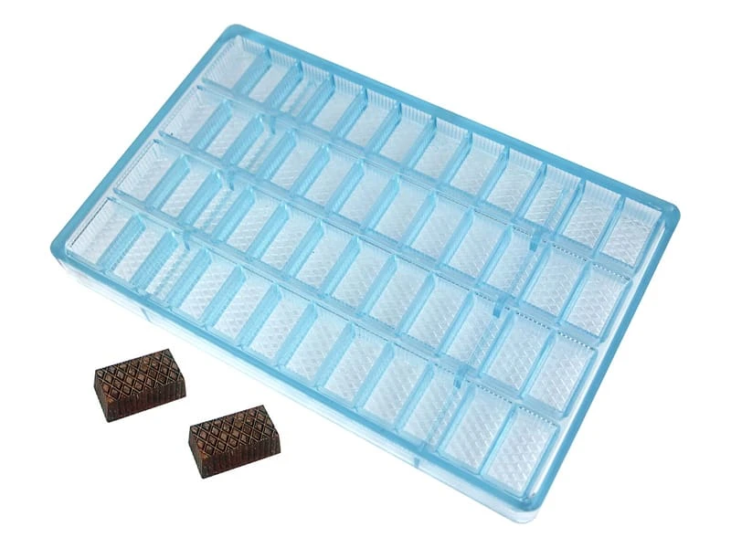 Moule en tritan composé de 48 empreintes rectangulaires relief nid d’abeille.