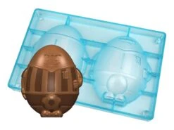 Moule en tritan comportant 2 empreintes pour réaliser 1 Oeuf « Maillot de Foot » après assemblage.
