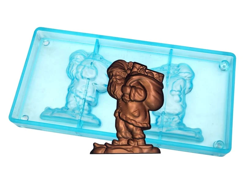 Moule en tritan composé de 2 empreintes (recto/verso) pour former le père Noël sur ses skis.