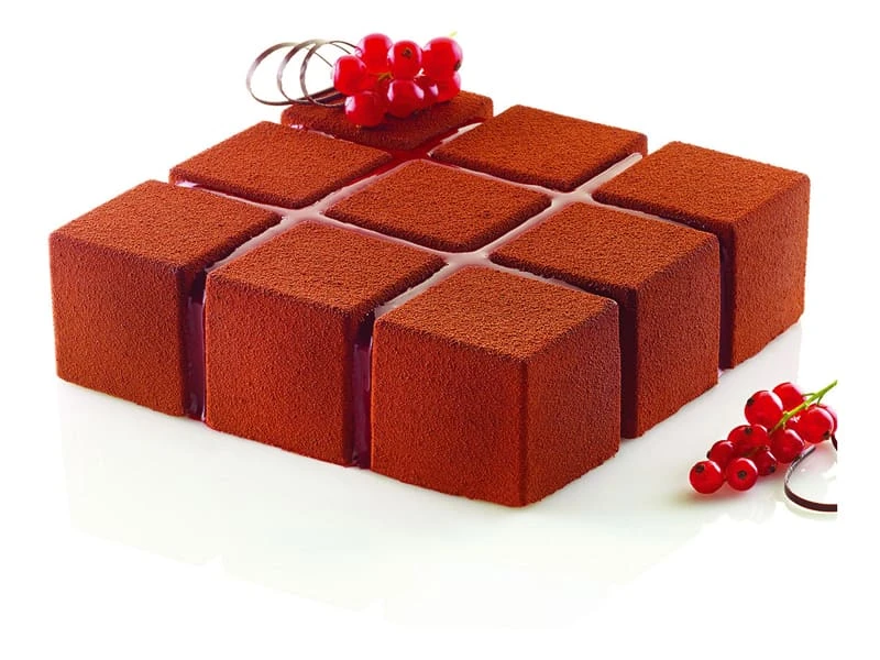 Grâce aux propriétés anti-adhérentes du silicone et la conception innovante du moule carré forme « Cubik », le démoulage de vos créations se fera facilement. Il ne vous restera plus qu’à ajouter la finition de votre choix : Glaçage, perlé velours, décors….
