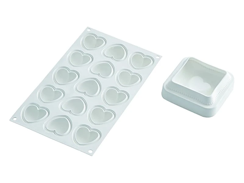 Ce kit complet de 8 éléments, vous permettra de réaliser des entremets originaux et colorés en forme de coeur posé sur un coussin. Grâce aux propriétés anti-adhérentes du silicone, le démoulage de votre dessert se fera facilement. Il ne vous restera plus qu’à ajouter la finition de votre choix. Réalisés en silicone platinium 100% Made in Italy, les 8 moules du kit résistent aux températures allant de -60°C à +230°C, garantissant ainsi des résultats parfaits aussi bien dans une cellule de refroidissement ou congélateur, que dans un four.