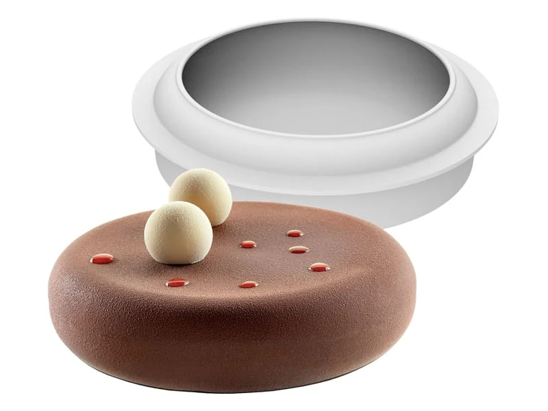 Ce moule en 2 parties a été conçu pour créer facilement un effet arrondi et bombé. Grâce aux propriétés anti-adhérentes du silicone, le démoulage de votre dessert se fera facilement. Il ne vous restera plus qu’à ajouter la finition de votre choix. Réalisé en silicone platinium 100% fabriqué en Italie, ce moule éclipse résiste aux températures allant de -60°C à +230°C, garantissant ainsi des résultats parfaits aussi bien dans une cellule de refroidissement ou congélateur, que dans un four.
