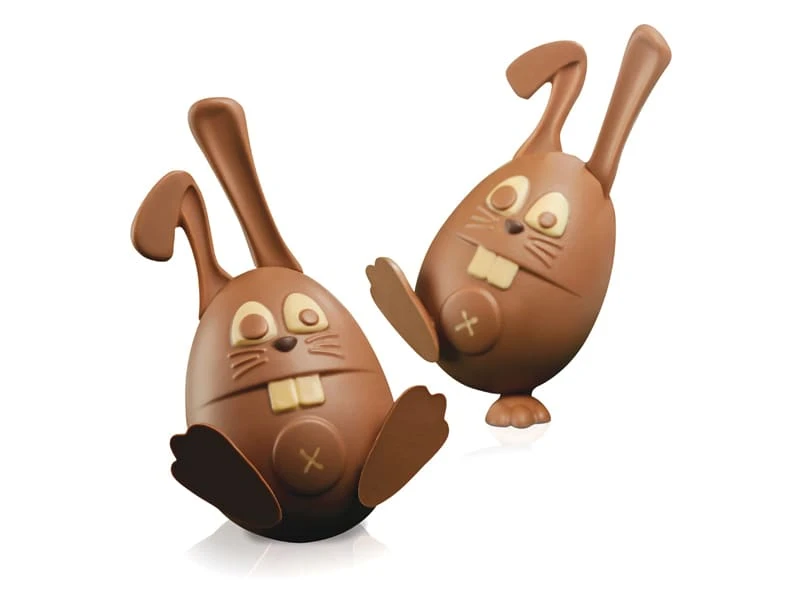 Composez 2 lapins en 3D avec ce kit constitué de 8 moules thermoformés en PVC rigide.