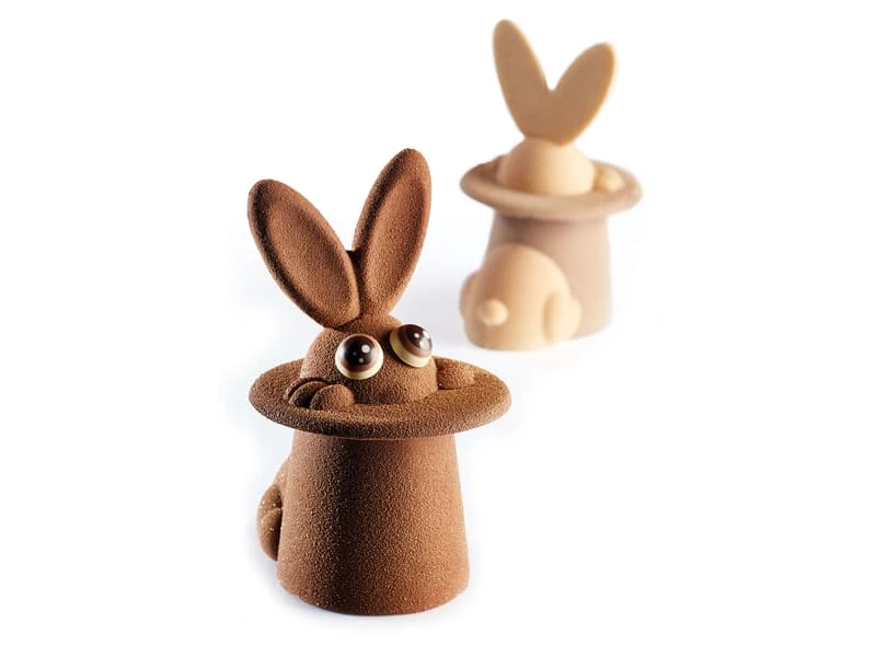 Composez 2 lapins en 3D avec ce kit constitué de 10 moules thermoformés en PVC rigide.