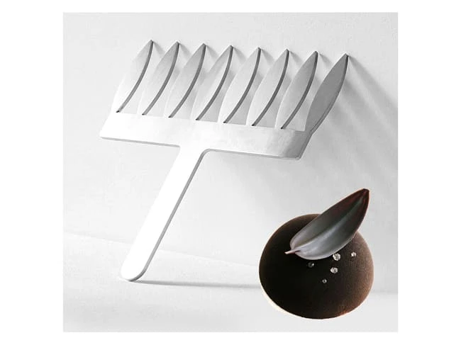 Le peigne à chocolat décor feuille est une création signée Franck Haasnoot, fabriquée par Martellato, permettant de réaliser d’élégants décors en chocolat.