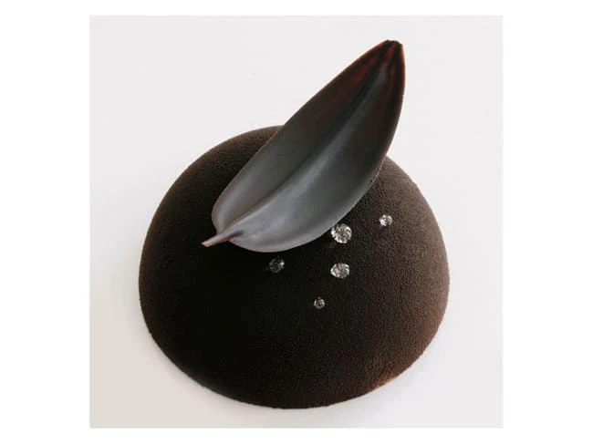 D’un simple geste, vous obtenez de jolies feuilles à déposer sur vos entremets, bûches ou toutes autres réalisations sucrées.