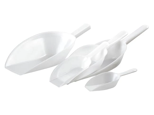 Pelle à ingrédients en polypropylène alimentaire blanc.