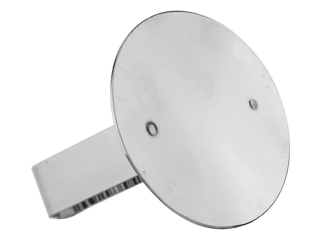 Poussoir rond en inox. Facilite le démoulage des entremets moulés en cercles individuels.