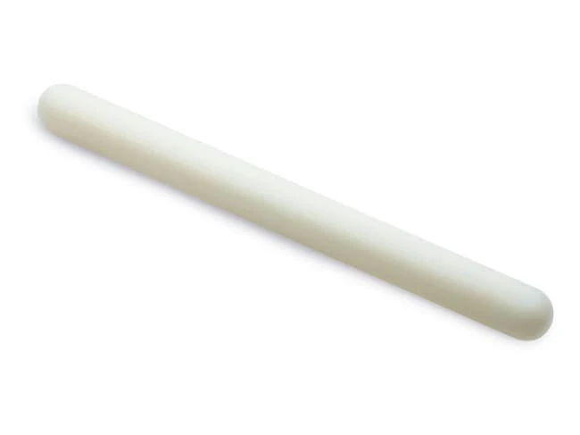 Rouleau à pâtisserie droit, en polyéthylène blanc haute densité, monobloc, sans poignées.