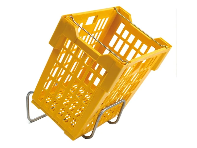 Support d’inclinaison de manne à pain qui facilite le transvasement des baguettes dans la manne.