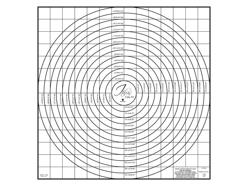 Ce tapis à étaler la pâte est gradué et quadrillé de 8 à 52 cm (tous les 4 cm). Les repères permettent de définir la taille exacte de la pâte afin qu’elle corresponde exactement au moule pour lequel elle est destinée.