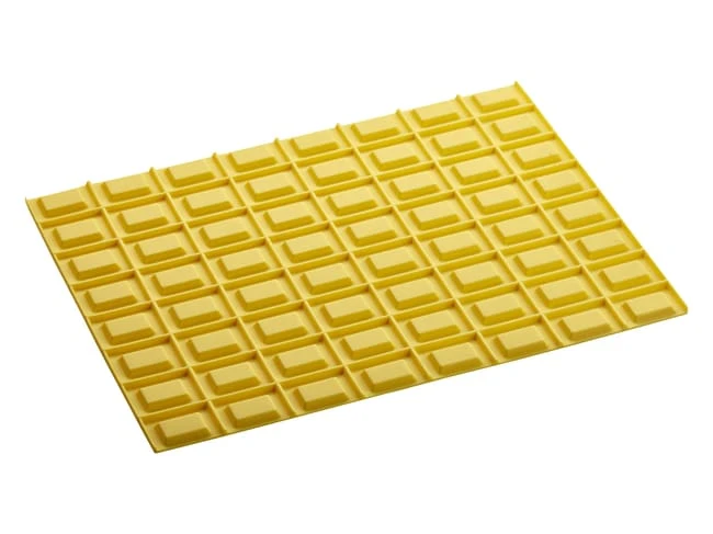 Son utilisation est très simple : placez le tapis (face texturée vers le haut) dans un moule à bûche de la même taille et étalez la pâte ou le bavarois sur votre plan de travail. Une fois votre préparation prête, déposez délicatement votre gâteau dans le moule, en veillant à ce qu’il capture parfaitement le magnifique relief inspiré des plafonds à caissons.