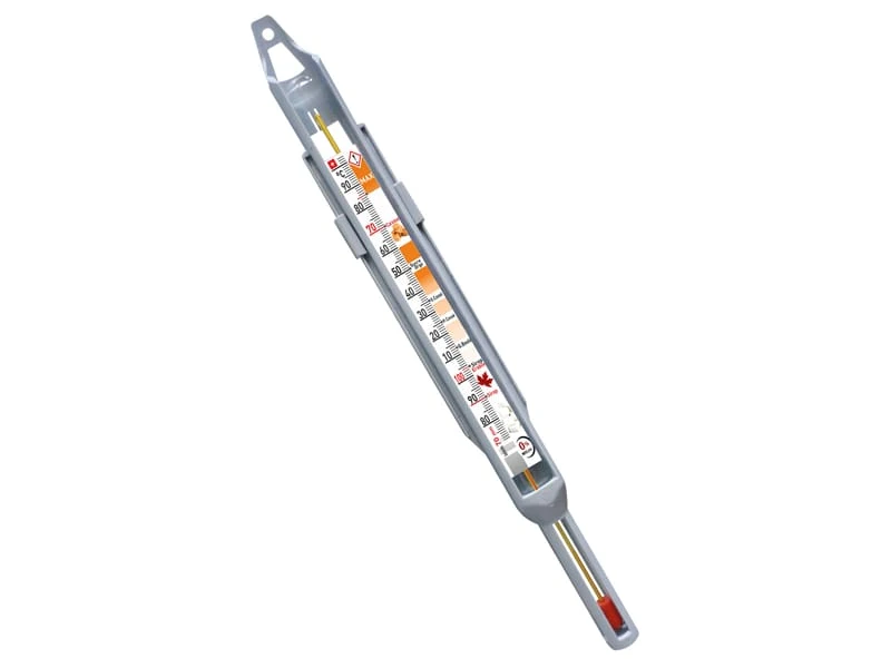 Le thermomètre confiseur en verre avec gaine de protection en polyamide grise brevetée, est particulièrement recommandé pour le travail du sucre et la réalisation de confiseries.